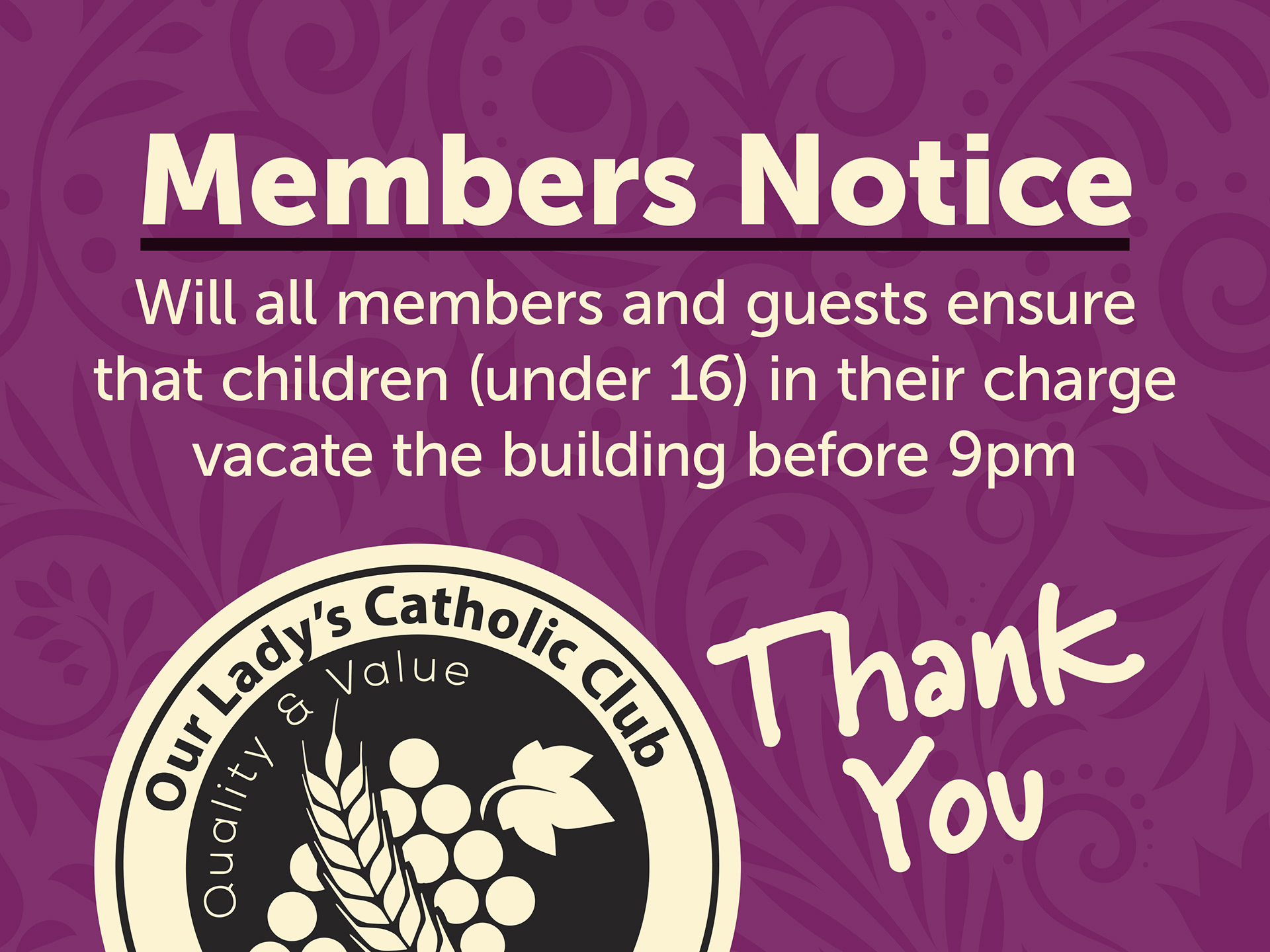 Social club open to new members and event hire, looking for an overhaul of all signage indoors and outside. Modern, but respecting traditional look. Only brief given, "We like this shade of purple". Logo supplied by client.